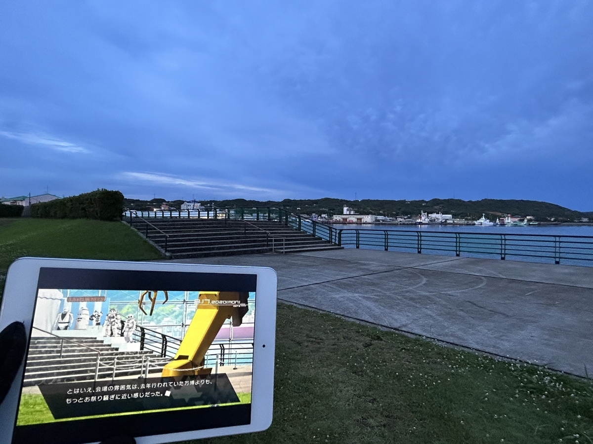 フェリー乗り場のすぐ近く。DaSHで登場した聖地です。ゲーム内で描かれたのは海側の入口。